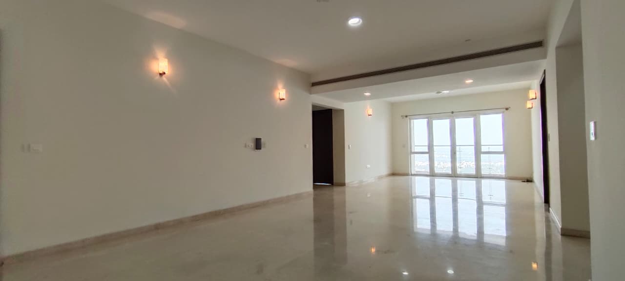 A posh, semi-furnished 4-bedroom apartment is now available for rent in Tower 4 of a premium gated community. Spanning 4,041 sq. ft. on a single level, this spacious home features four well-appointed bedrooms, five modern bathrooms, a large and elegant living and dining area, and is fully centrally air-conditioned for year-round comfort. It also includes a separate maid’s room with an attached toilet, along with two reserved car parking spaces. Perfectly suited for a deserving family, this apartment offers refined living in a secure, well-maintained environment with all the comforts of a high-end gated community.